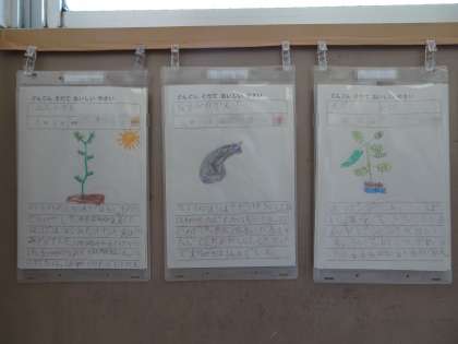 ミニトマトの観察記録を掲示しています。