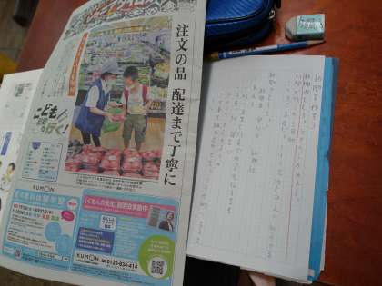 教材文を読み,新聞の特徴や作り方の手順,割り付けの工夫について確かめました。