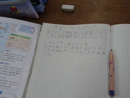 日本の近海について調べて水産業に関心をもち,学習問題をつくり,予想しました。