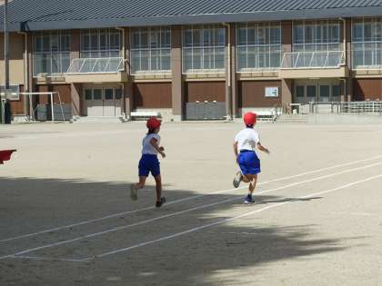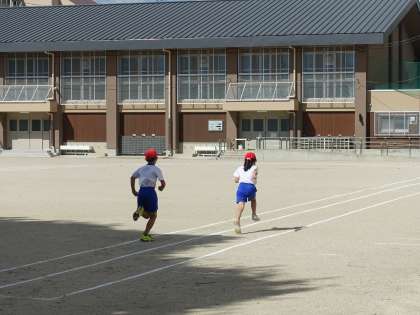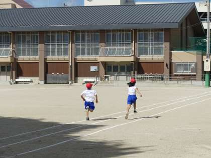 80m走のスタート位置や曲がり方、ゴールを確認しました。