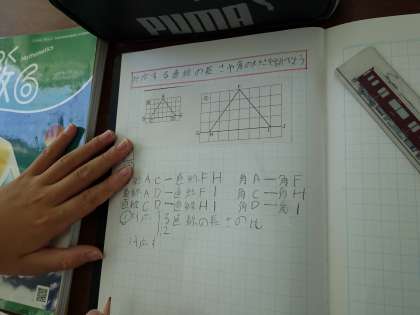 形が同じ図形の,対応する直線の長さや角の大きさについて調べました。