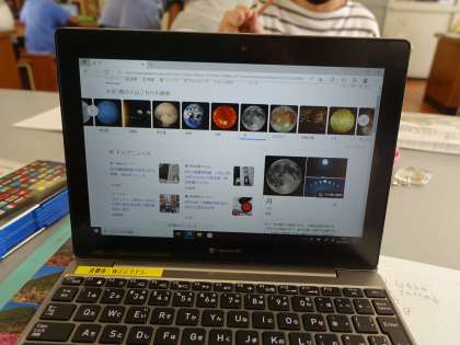 コンピュータなどで,日によって月の形の変わる様子を調べました。