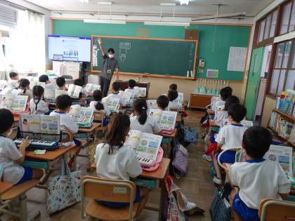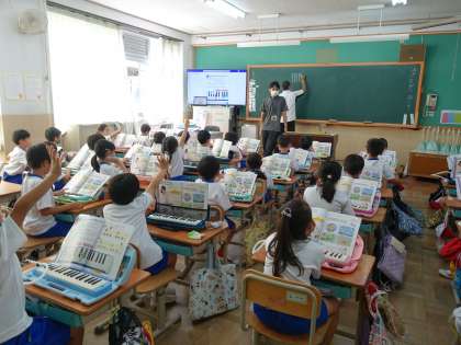 鍵盤ハーモニカの基本的な演奏の仕方(姿勢,息の入れ方,タンギングなど)に気を付けながら,楽しんで様々な音を出しました。