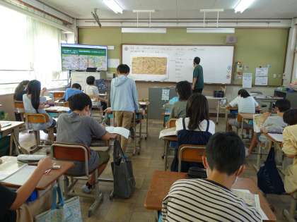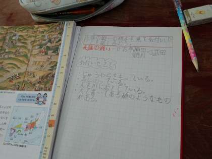 長篠の戦いの様子や戦国大名の勢力図から,気付いたことを話し合い,学習問題をつくりました。
