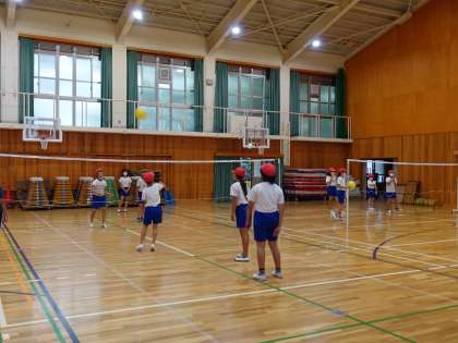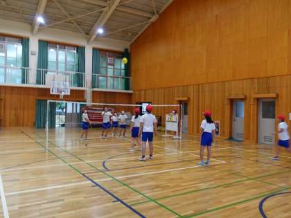 簡単な攻め方(拾って,つなげて,返す)を工夫してゲームを楽しみました。