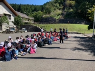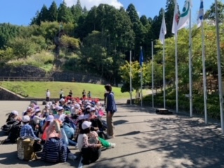 昼食後、玄関前で入所式を行いました。有意義な一泊二日の学習にしてほしいと思います。