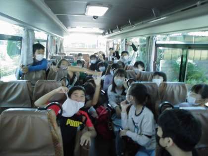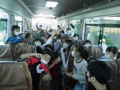 貸切バスで花背山の家に出発です。
