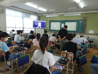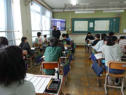 ♪6年生 書写「文字の大きさと配列,点画のつながり(小筆)」〜この道や行く人なしに秋の暮〜 その1