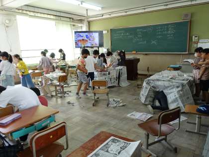 新聞紙がもつ特徴や質感を体全体で感じながら,楽しく活動をしました。