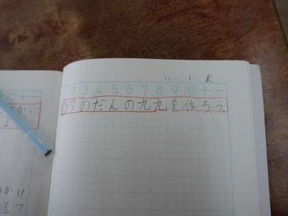 7の段の九九を使って答えを求めました。