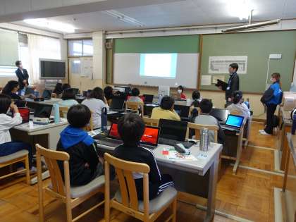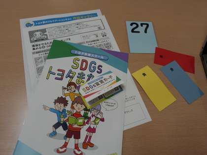 ゲームの内容を振り返りながらSDGsとの関わりや取り組み事例について学びます。自分の身の回りで出来ることを発表し合い、授業のまとめを行いました。