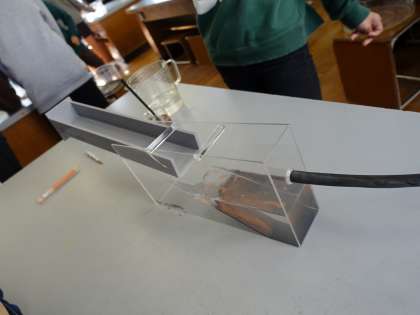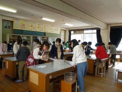 流れる水の働きと地層のでき方の関係を調べました。