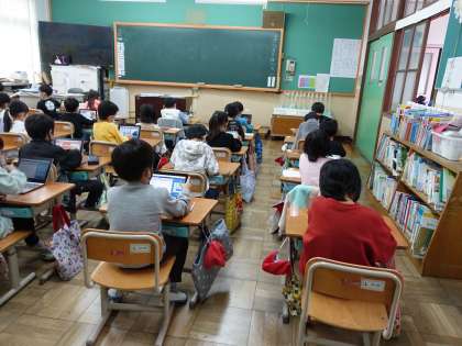GIGA端末を使って、「たし算(2)」の単元の練習問題をしました。