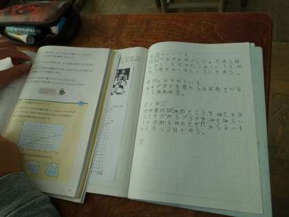 比例の意味を理解し,2量の関係を表や式,グラフに表したり,グラフを読み取ったりしました。