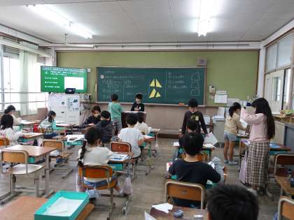 どのような切り方をしたら三角形や四角形になったのか説明しました。