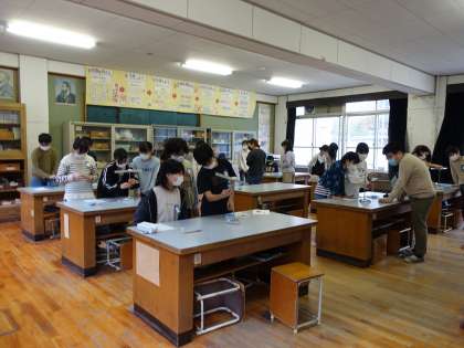 実験用てこのうでが水平になってつり合うときのきまりを,条件を整えて調べました。