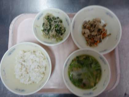 ・切干大根のごま煮…冬に美味しい大根葉を使っています。風邪を防ぐビタミンCを多く含んでいます。