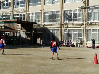 攻め方や守り方を工夫したり,自分のチームの特徴に応じた作戦を工夫したりしながらいろいろなチームに挑戦してゲームを楽しんでいます。