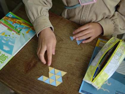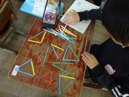 同じ三角形を敷き詰めたりして理解を深めています。