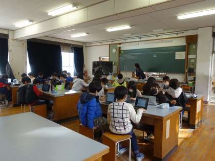 GIGA端末を使って、水のあたたまり方を予想しました。