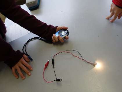 豆電球は3回とも1分ほどで明かりが消えたけど,発光ダイオードは3回とも3分以上明かりがついていました。