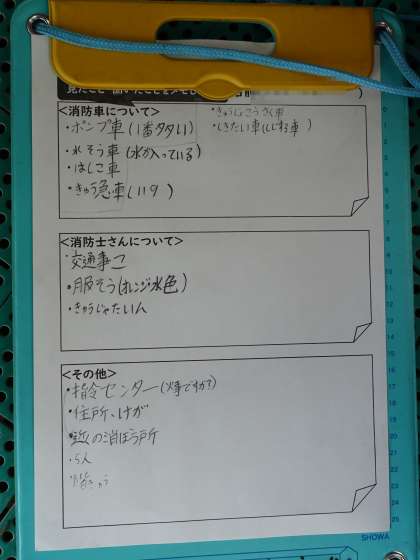 京都市消防局右京消防署の方に起こしいただき、火災発生時の対応について、インタビューや質問をしました。