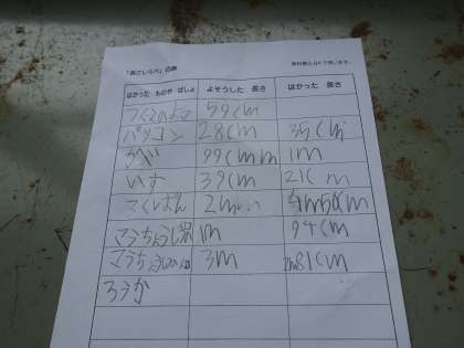 1mの長さをもとにいろいろなものの長さを予想して調べました。