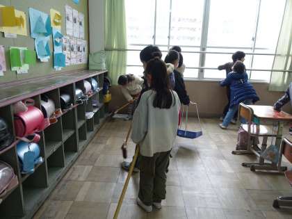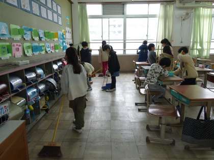 半日入学で教室を使いました。新1年生のために、きれいに清掃しました。