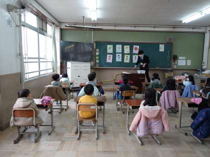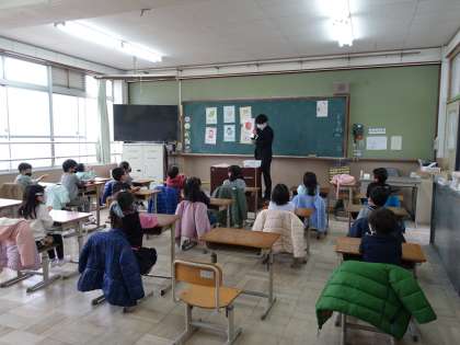 入学予定児童は、教室で小学校体験を行いました。