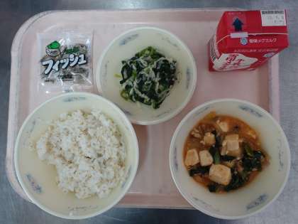※「とうふの四川風」は豆板醤のピリッとした味つけが、ご飯とよく合いました。