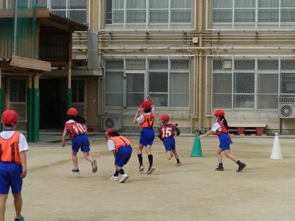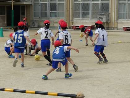 ルールやゲームの進め方に慣れ,自分のチームの様子を知りながら,いろいろなチームに挑戦して楽しみました。