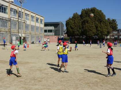 有利な場所への動きやパスを工夫しながら,相手チームに挑戦して楽しみました。