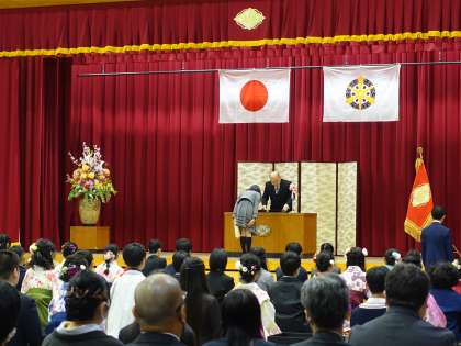 国歌斉唱に続き、校歌斉唱です。いよいよ卒業証書授与です。