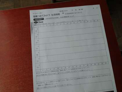 時間軸で自分の生活を書き出して、協力の視点で見直し,工夫できることを見つけました。