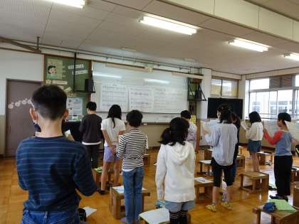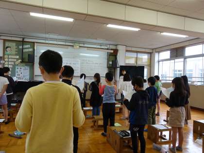 「Believe」の範唱を聴き,情景を想像し,明るく響きのある声で歌詞唱しました。