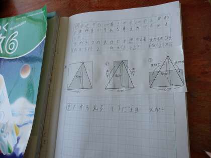 文字を使った式から、三角形や台形などの面積をどのように考えて求めたかを読み取りました。