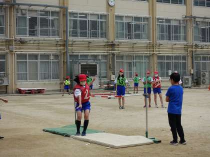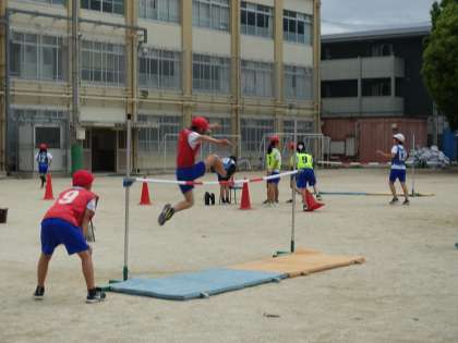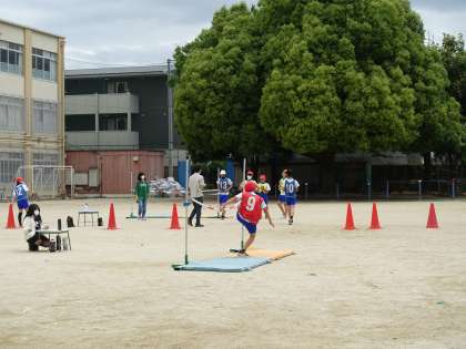 助走・踏切・空中動作などを工夫して、自分の記録に挑戦したり、自分の記録とふさわしい相手と競争したりしています。