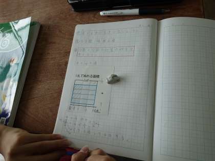 4/5×1/3の計算の仕方を考えました。
