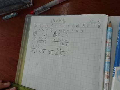 複雑な小数のかけ算の筆算のしかたを考えました。