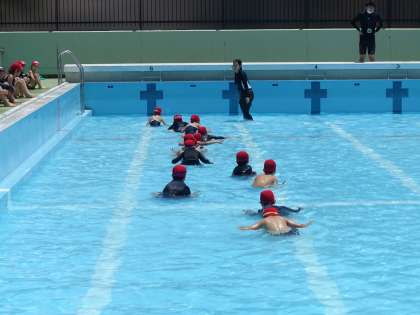 浮く・もぐる水遊びを工夫して楽しみました。