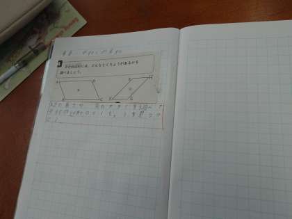 辺の長さや角の大きさを調べて、平行四辺形の特徴をみつけました。