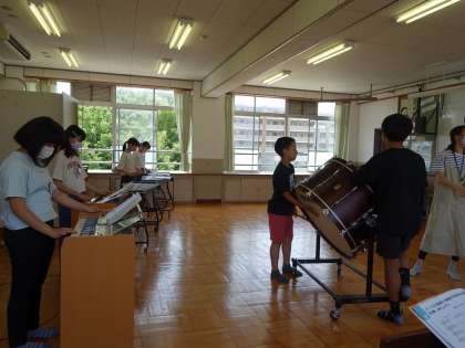 それぞれのパートにふさわしい楽器を選び、全体の響きを味わいながら合奏しました。