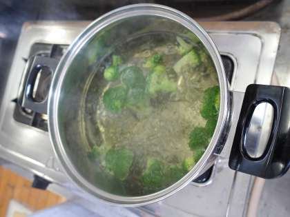 ゆで野菜サラダづくりをしました。