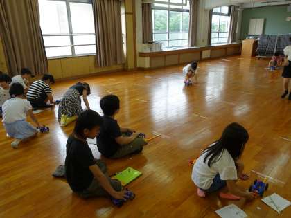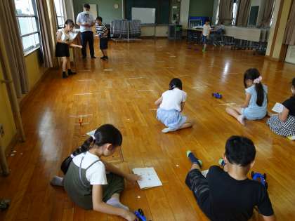 ゴムののばし方をかえると距離が変わることに気づきました。