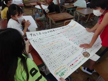 夏休みに取り組んだ自由研究をグループで交流しました。
