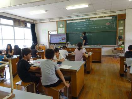 花と実について気付いたことを話し合い、アサガオの花のつくりを調べました。