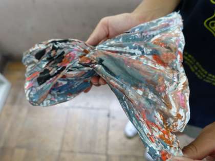 液体粘土で固めた「布の形の高さや膨らみ」の変化により、布のつくりだす形の変化を楽しみました。