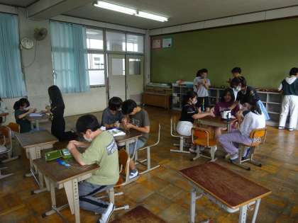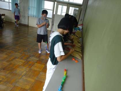 前回のスマイルタイムで全校のみんなに折ってもらった鶴を