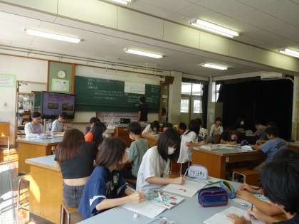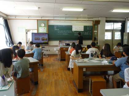 植物が出し入れする気体を、条件を整えて調べ、植物と空気との関わりについて話し合いました。
