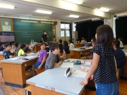 雨が降っているときや、上がった後の地面の様子について気づいたことを話し合いました。